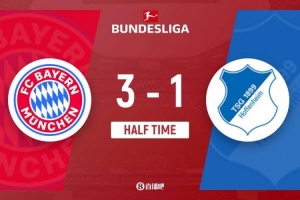 体育资讯2月9日讯 北京时间2月9日0点30分,德甲第21轮,拜仁慕尼黑在主场安联竞技场对阵霍芬海姆。上半场,迪亚斯造点,阿克波古马染红,凯恩点射破门,阿斯拉尼头球中框,诺伊尔失误送礼,克拉马里奇版平板比分,半场结束前迪亚斯再度造点,凯恩点射双响,迪亚斯补时自己打进一球。上半场拜仁慕尼黑3-1霍芬海姆。