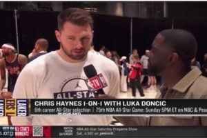 体育资讯2月16日讯 今天,湖人球星卢卡·东契奇在接受采访时突然被旁边的文班亚马打断。