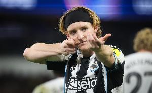 纽卡斯尔本场比赛首发如下:波普、特里皮尔、佳夫、丹·伯恩、霍尔、托纳利、威洛克、伊兰加、沃尔特马德、巴恩斯、戈登。